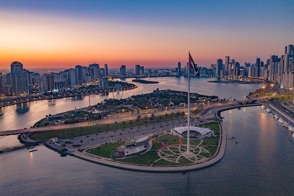 βThe Flag Island boasts the U.A.E. Flag on a 123 meter- high pole, which was named the worldβs 7th tallest during the opening on the 2nd of December 2012. The Flag Island is a destination where design, fitness and leisure intersect to offer an unparalleled experience for the public in Sharjah and the U.A.E. The 630 metres synthetic track and other exercise equipments offer convenience to do workout with beautiful view of the creek.β